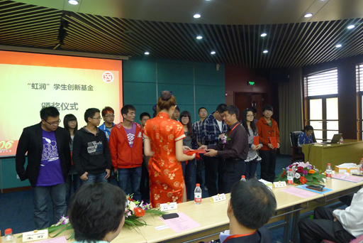 董事長林善平為上海理工大學獲獎學生頒發(fā)虹潤助學獎金