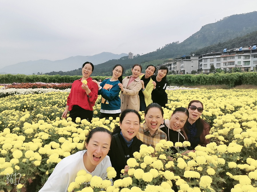仿佛感覺到了虹潤人的熱情,活動當(dāng)天陽光明媚,偶有微風(fēng)徐徐,叫人心曠神怡。歷經(jīng)一個多小時,業(yè)務(wù)部一行來到了位于沙縣瑯口的三明國家農(nóng)業(yè)科技園區(qū)新品種展示中心,金秋時節(jié),“菊舞金秋,魅力沙縣”田園菊花展盛裝迎接。50畝菊花競相盛開,色彩斑斕,花型飽滿,搭配各式各樣的造型,令人目不暇接。