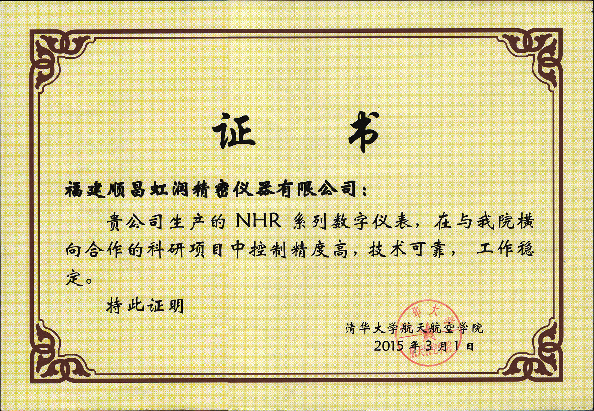 清華大學航空航天學院成立于1938年,它培養(yǎng)了一大批優(yōu)秀人才,為我國航空學科的創(chuàng)建和航空科技的發(fā)展做出了重要貢獻?,F(xiàn)已成為我國航天航空領(lǐng)域高素質(zhì)人才培養(yǎng)的搖籃和和航空航天高科技研究領(lǐng)域的重點學府。本次虹潤儀表標志著虹潤公司成為國內(nèi)為數(shù)不多的能為中國航天科技前沿領(lǐng)域提供儀表的供應商。
