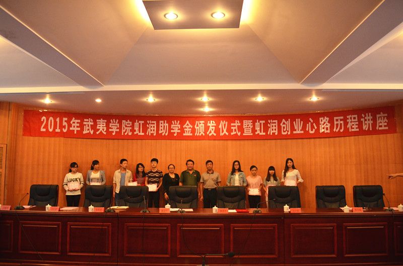 學(xué)生處處長廖斌宣讀了《關(guān)于公布2014-2015學(xué)年“武夷學(xué)院虹潤助學(xué)金”獲得者名單的通知》。生態(tài)與資源工程學(xué)院2013級化學(xué)工程與工藝專業(yè)于海星作為學(xué)生代表做了發(fā)言,她表達(dá)了對林善平先生及學(xué)校的感激之情,表示要奮發(fā)圖強(qiáng),勤奮學(xué)習(xí),積極參加各類志愿服務(wù)和社會實(shí)踐活動,永懷感恩之心,在以后的工作和學(xué)習(xí)中,奉獻(xiàn)社會。