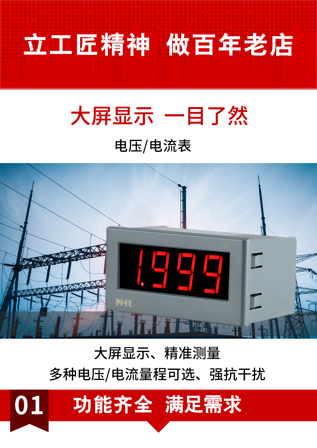 虹潤公司是專業(yè)生產(chǎn)數(shù)字電壓表的國家專精特新“小巨人”企業(yè)。生產(chǎn)的電壓/電流表,具有大屏LED顯示,交直流電壓/電流輸入,免設(shè)置易接線,性價比高等特點。產(chǎn)品獲得一種交流信號變送器、交直流信號轉(zhuǎn)換電路、基于DCS技術(shù)的盤裝式三相電量表等3項國家發(fā)明專利,主持起草現(xiàn)場設(shè)備集成等5項智能制造國家標(biāo)準(zhǔn),物聯(lián)網(wǎng)電流變送器規(guī)范、物聯(lián)網(wǎng)總體技術(shù)智能傳感器特性與分類等2項國家標(biāo)準(zhǔn),以及直流漏電流傳感器規(guī)范、通信系統(tǒng)多通道數(shù)據(jù)采集控制終端規(guī)范等2項軍用標(biāo)準(zhǔn),參與國際5G標(biāo)準(zhǔn)制定。產(chǎn)品廣泛應(yīng)用于電力系統(tǒng)、工業(yè)制造、自動化設(shè)備、計量檢測等各種工業(yè)領(lǐng)域。