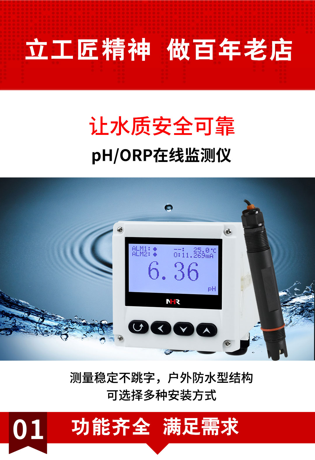 虹潤公司是專業(yè)生產(chǎn)水質(zhì)分析儀的國家專精特新“小巨人”企業(yè)。生產(chǎn)的PH/ORP在線監(jiān)測儀,具有多元化安裝方式,IP65防護(hù)等級,多種類型輸出,測量精準(zhǔn)穩(wěn)定不跳字,變送輸出精準(zhǔn)等特點。產(chǎn)品獲得一種適應(yīng)性強PH控制儀、智能化控制器等2項國家發(fā)明專利;主持起草現(xiàn)場設(shè)備集成等5項智能制造國家標(biāo)準(zhǔn),以及現(xiàn)場設(shè)備工具(FDT)接口規(guī)范、工業(yè)過程控制系統(tǒng)用模擬輸入兩位或多位輸出儀表、過程分析技術(shù)系統(tǒng)等3項國家標(biāo)準(zhǔn);參與國際5G標(biāo)準(zhǔn)制定,取得PH值測量儀表等2項相關(guān)軟件著作權(quán)。產(chǎn)品廣泛應(yīng)用于實驗室、水處理、環(huán)境監(jiān)測、食品、制藥、農(nóng)業(yè)等諸多領(lǐng)域。
