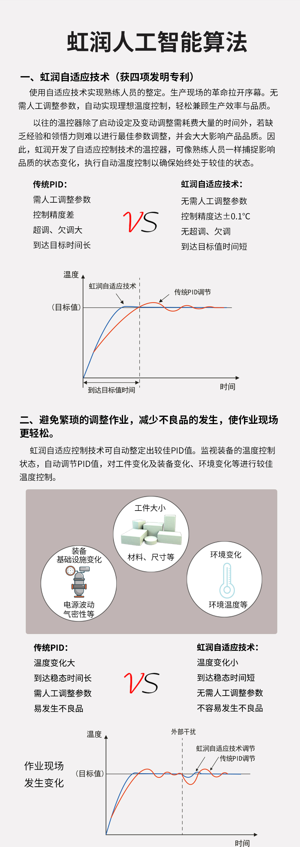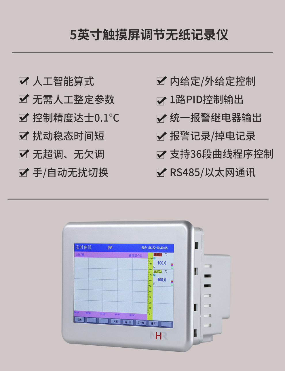 虹潤公司是專業(yè)生產(chǎn)無紙記錄儀的國家專精特新“小巨人”企業(yè)。生產(chǎn)的觸摸屏調(diào)節(jié)無紙記錄儀,具有觸摸大屏顯示,真正人工智能算式,無需人工整定參數(shù),控制精度達士0.1°C,數(shù)據(jù)記錄與轉(zhuǎn)存, RS485/以太網(wǎng)通訊,5/7/9英寸可選等特點。產(chǎn)品獲得智能化控制器、人工智能調(diào)節(jié)器及調(diào)節(jié)方法、模糊PID控制儀及控制方法、平板無紙記錄儀、巡回檢測顯示方法及裝置等5項國家發(fā)明專利,主持起草物聯(lián)網(wǎng)智能記錄儀表通用技術(shù)條件、物聯(lián)網(wǎng)智能溫度儀表通用技術(shù)條件、工業(yè)過程測量和控制系統(tǒng)用智能調(diào)節(jié)器等3項國家標(biāo)準(zhǔn),通信系統(tǒng)多通道數(shù)據(jù)采集控制終端規(guī)范軍用標(biāo)準(zhǔn),以及空間數(shù)據(jù)與信息數(shù)據(jù)傳輸系統(tǒng)等2項航天標(biāo)準(zhǔn),參與國際5G標(biāo)準(zhǔn)制定,取得觸摸屏彩色調(diào)節(jié)無紙記錄儀等3項相關(guān)軟件著作權(quán)。產(chǎn)品廣泛應(yīng)用于電力、石化、冶金、化工、食品、制藥、熱處理、水處理、機械配套等諸多領(lǐng)域。