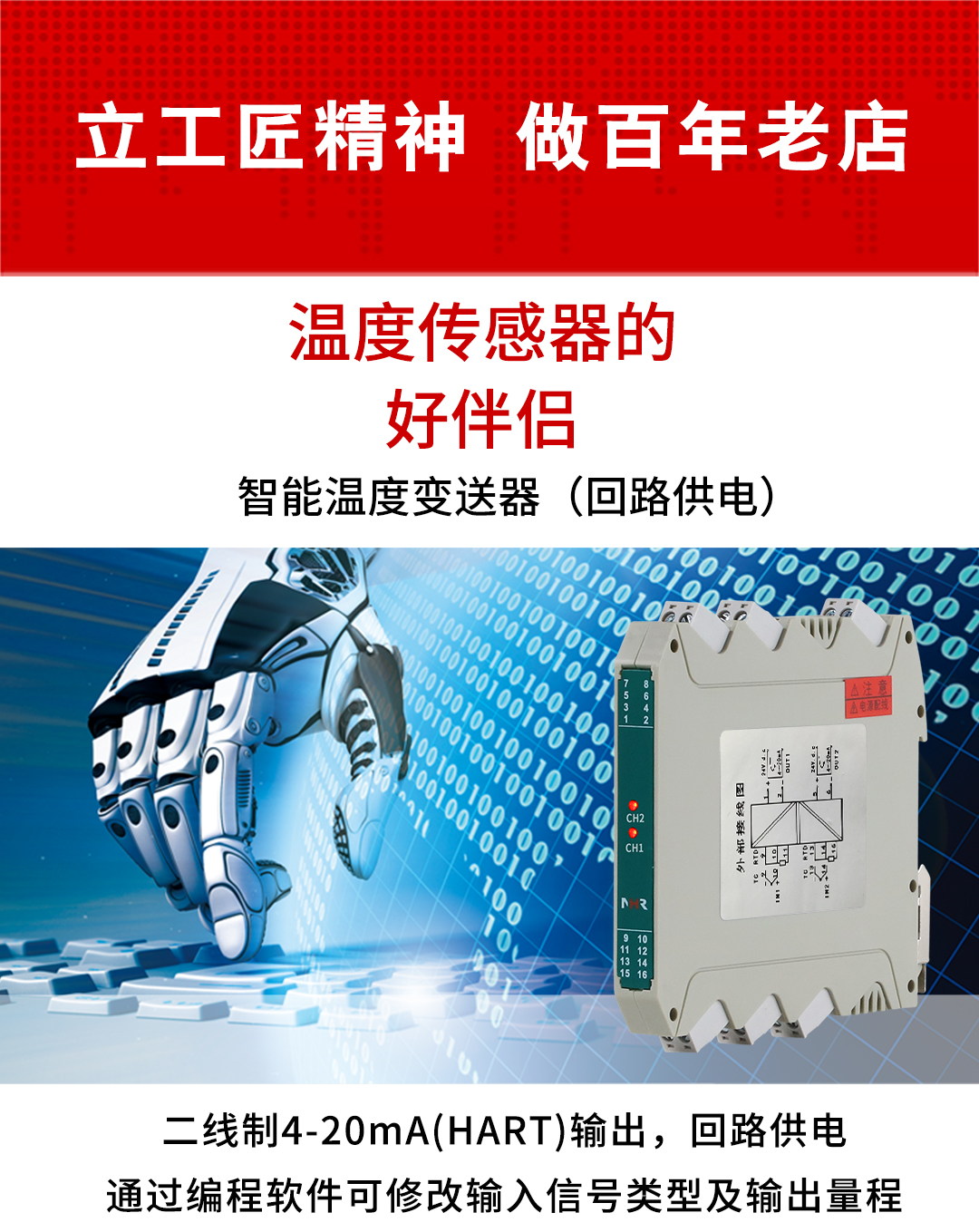 虹潤公司是專業(yè)生產(chǎn)溫度變送器的國家專精特新“小巨人”企業(yè)。生產(chǎn)的HART智能溫度變送器,具有適配各類溫度傳感器,通過編程線修改輸入信號類型及量程,二線制4-20Ma(HART)輸出,回路供電等特點。該產(chǎn)品不僅通過HART基金會認證、德國萊茵 CE 認證與 SIL 功能安全認證,還獲得具備減震抗干擾能力的溫度變送器、信號隔離器、一種二端子模塊、無源信號隔離器等4項國家發(fā)明專利,主持起草物聯(lián)網(wǎng)智能溫度儀表、現(xiàn)場設備工具(FDT)接口規(guī)范、工業(yè)過程測量和控制系統(tǒng)用溫度變送器等3項國家標準,以及通信系統(tǒng)多通道數(shù)據(jù)采集控制終端規(guī)范軍用標準,參與國際5G標準制定,取得HART溫度變送器、智能溫度變送器等5項相關軟件著作權。產(chǎn)品廣泛應用于石油、化工、電力、冶金、制藥、食品、水處理等各種工業(yè)領域。