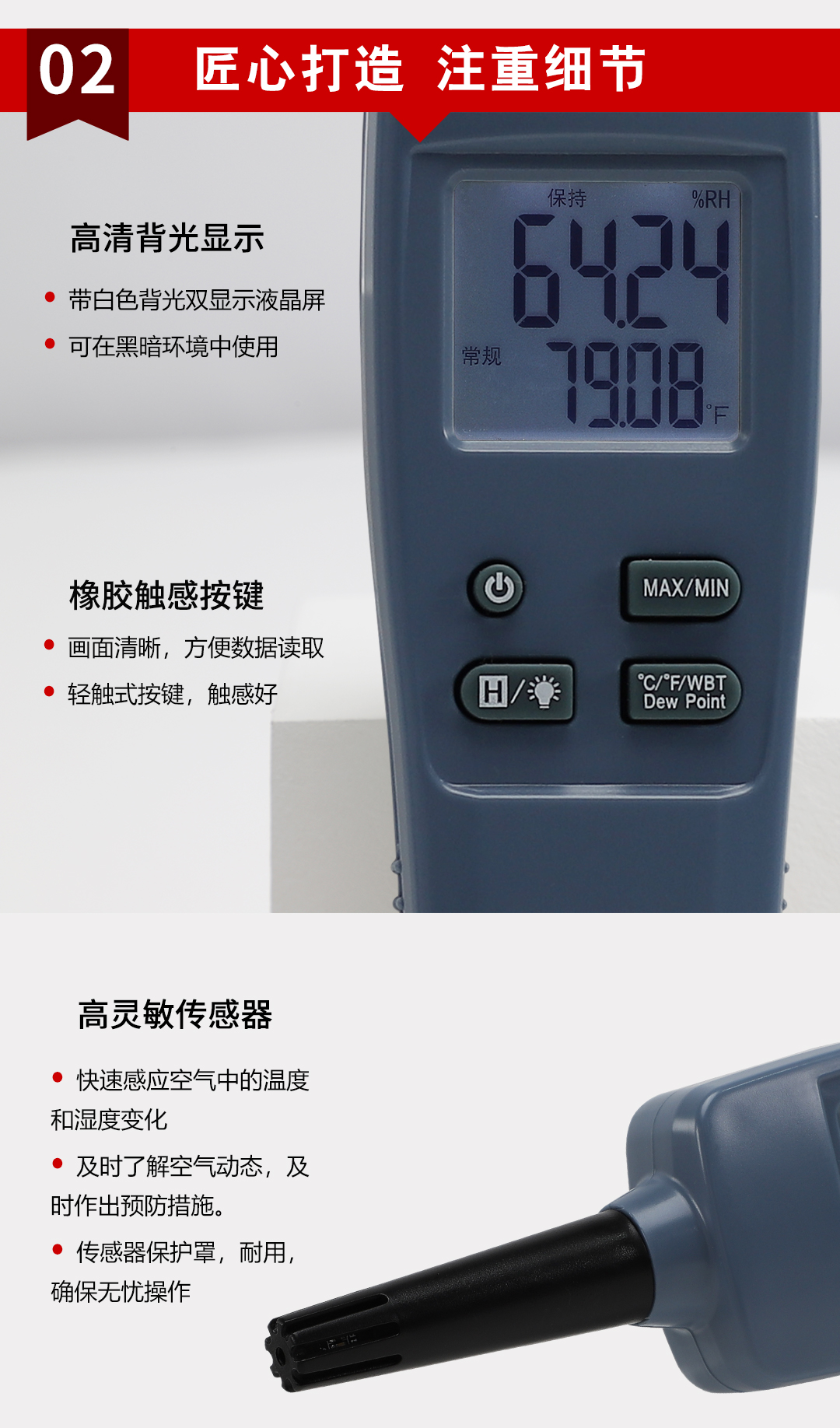 虹潤公司是專業(yè)生產(chǎn)環(huán)境監(jiān)測儀表的國家專精特新“小巨人”企業(yè)。生產(chǎn)的手持式溫濕度檢測儀,具有測量精度高,多參數(shù)測量,最大最小值記錄,小巧便捷、低功耗省電設(shè)計(jì)等特點(diǎn)。產(chǎn)品獲得一種手持式低功耗溫濕度檢測儀、大屏幕溫濕度記錄儀等2項(xiàng)國家發(fā)明專利,主持起草物聯(lián)網(wǎng)智能溫度儀表通用技術(shù)條件、冷鏈溫度記錄儀等2項(xiàng)國家標(biāo)準(zhǔn),以及通信系統(tǒng)多通道數(shù)據(jù)采集控制終端規(guī)范軍用標(biāo)準(zhǔn),以及現(xiàn)場設(shè)備集成等5項(xiàng)智能制造國家標(biāo)準(zhǔn),參與國際5G標(biāo)準(zhǔn)制定,取得環(huán)境溫濕度測試儀等3項(xiàng)相關(guān)軟件著作權(quán)。產(chǎn)品廣泛應(yīng)用于實(shí)驗(yàn)室、博物館、農(nóng)業(yè)大棚、生產(chǎn)車間、倉庫、配電機(jī)房等諸多領(lǐng)域。