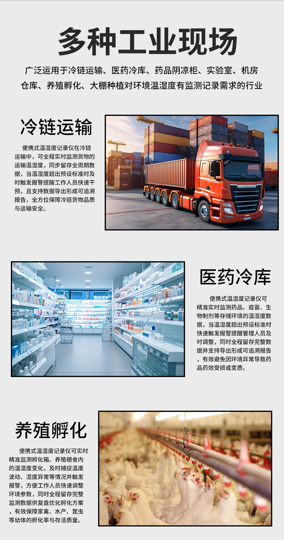 虹潤公司是專業(yè)生產(chǎn)環(huán)境監(jiān)測儀表的國家專精特新“小巨人”企業(yè)。生產(chǎn)的便攜式溫濕度記錄儀,具有溫濕度記錄與轉存,手機充電電池,磁吸或壁掛安裝,故障報警提示,配上位機軟件等特點。產(chǎn)品獲得一種手持式低功耗溫濕度檢測儀、無紙記錄儀等2項國家發(fā)明專利,主持起草物聯(lián)網(wǎng)智能溫度儀表通用技術條件、冷鏈溫度記錄儀等2項國家標準,通信系統(tǒng)多通道數(shù)據(jù)采集控制終端規(guī)范軍用標準,以及現(xiàn)場設備集成等5項智能制造國家標準,參與國際5G標準制定,取得便攜式溫濕度記錄儀等3項相關軟件著作權。產(chǎn)品廣泛應用于冷鏈運輸、醫(yī)藥冷庫、藥品陰涼柜、實驗室、機房倉庫、養(yǎng)殖孵化、大棚種植等諸多領域。