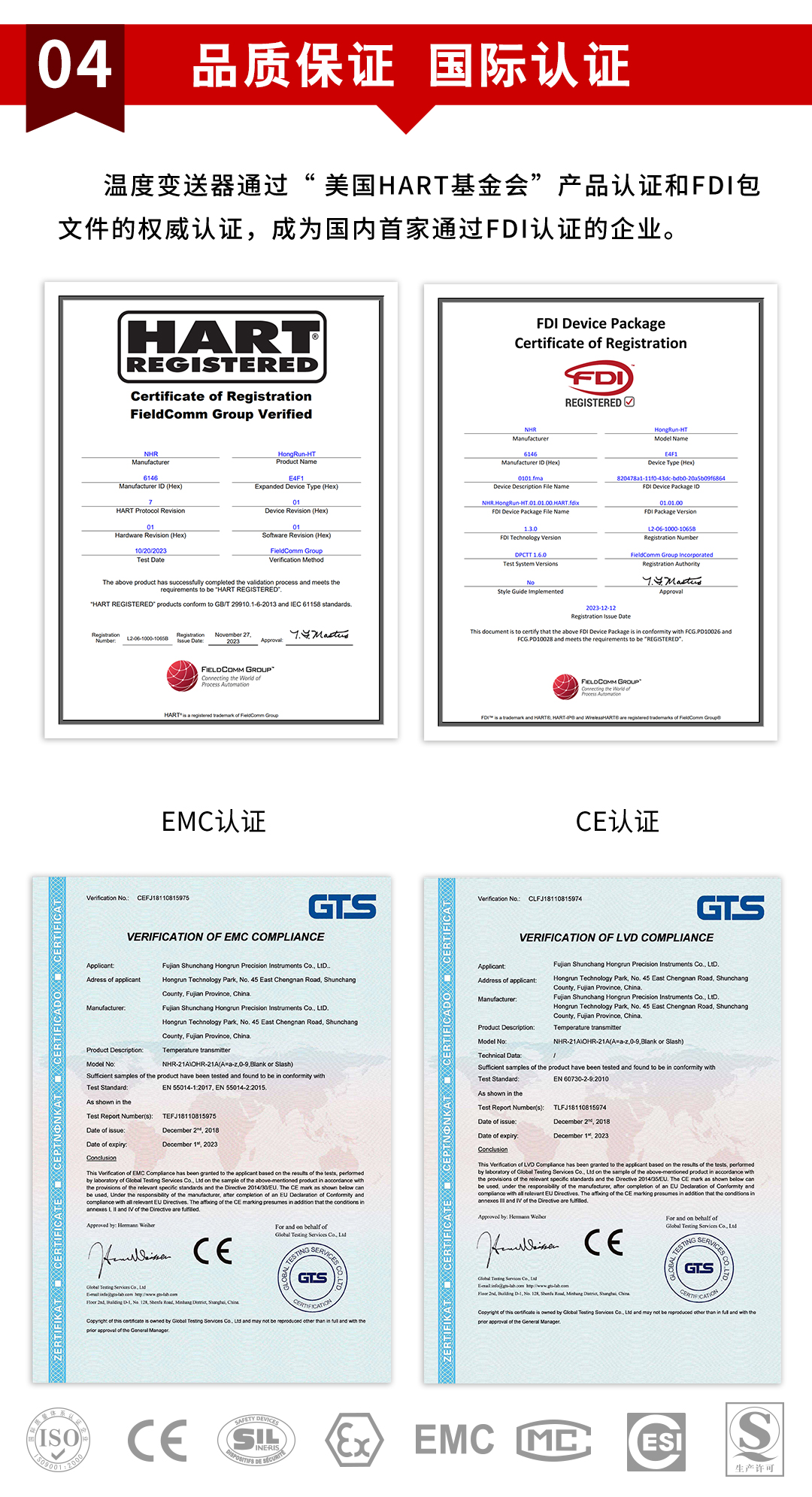 虹潤(rùn)公司是專業(yè)生產(chǎn)溫度變送器的國(guó)家專精特新“小巨人”企業(yè)。生產(chǎn)的現(xiàn)場(chǎng)顯示隔離溫度變送器,具有可修改輸入信號(hào)類型,測(cè)量精度高,穩(wěn)定性好,帶HART或RS485通訊計(jì)等特點(diǎn)。該產(chǎn)品不僅通過德國(guó)萊茵 CE 認(rèn)證與 SIL 功能安全認(rèn)證,還獲得具備減震抗干擾能力的溫度變送器、信號(hào)隔離器、一種二端子模塊、無源信號(hào)隔離器等3項(xiàng)國(guó)家發(fā)明專利。主持起草物聯(lián)網(wǎng)智能溫度儀表、現(xiàn)場(chǎng)設(shè)備工具(FDT)接口規(guī)范、工業(yè)過程測(cè)量和控制系統(tǒng)用溫度變送器等3項(xiàng)國(guó)家標(biāo)準(zhǔn),以及通信系統(tǒng)多通道數(shù)據(jù)采集控制終端規(guī)范軍用標(biāo)準(zhǔn)。參與國(guó)際5G標(biāo)準(zhǔn)制定,取得高精度溫度變送器等3項(xiàng)相關(guān)軟件著作權(quán)。產(chǎn)品廣泛應(yīng)用于石油、化工、電力、冶金、制藥、食品、水處理等各種工業(yè)領(lǐng)域。